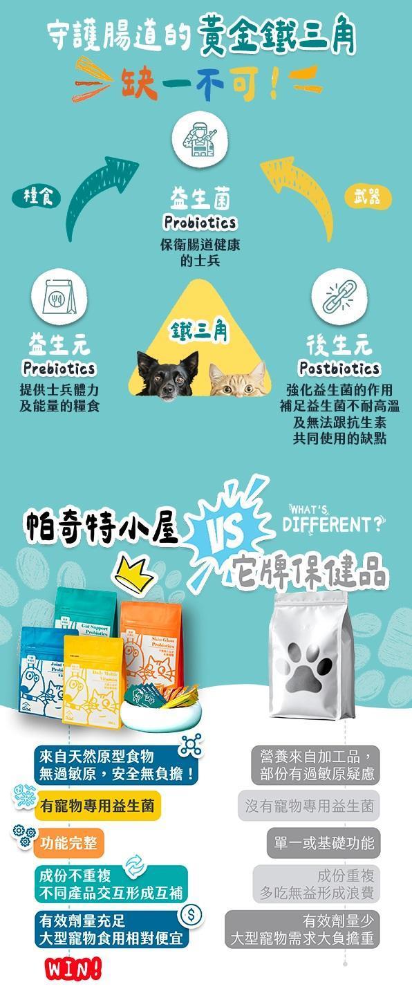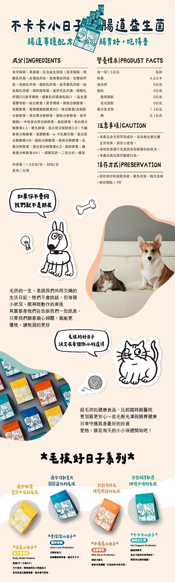 *本產品主要協助調整腸道菌叢、幫助消化;若毛孩原本有腹瀉或其他腸胃問題,建議先諮詢獸醫師後再使用。
