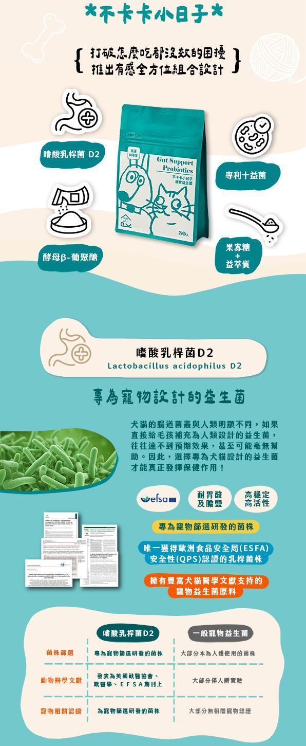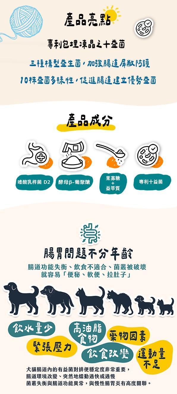 ✦ 寵物專用益生菌 ➔ 嗜酸乳桿菌D2 + 十益菌,共11株菌,守護腸胃健康